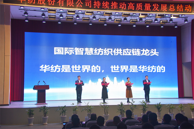1月1日,華紡股份有限公司持續(xù)推動高質(zhì)量發(fā)展總結(jié)動員大會在會議中心一號會議室隆重召開。公司黨委書記、董事長盛守祥,公司黨委、行政班子成員、戰(zhàn)略委員會成員、2024年度退休員工代表、各部門主要負(fù)責(zé)同志以及在職員工代表等五百余人齊聚一堂,總結(jié)2024榮光,展望2025宏圖,表彰優(yōu)秀、激勵先進(jìn)、凝聚共識、匯聚力量,以昂揚(yáng)的姿態(tài)譜寫公司高質(zhì)量發(fā)展的嶄新篇章。